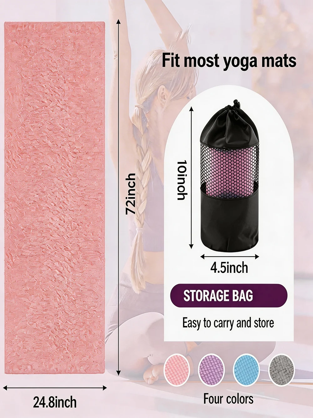 Enhance your workouts with this Non-Slip Yoga Mat Towel designed for maximum comfort and performance. Measuring 72″x24″, it fits most standard yoga mats, providing full coverage during your sessions. Made from ultra-absorbent microfiber, it effectively wicks away sweat to keep you dry and focused. The silicone grip dots on the underside ensure the towel stays securely in place, preventing slipping during movement. Perfect for yoga, Pilates, hot yoga, and general fitness routines. The soft and lightweight material offers a comfortable surface for all types of exercises. Easy to carry and store, it’s ideal for gym use, travel, or home workouts. Durable construction ensures long-lasting use even with frequent washing. It also adds a layer of hygiene by creating a clean barrier between you and shared mats. Stay dry, stable, and confident during every workout with this essential yoga mat towel.